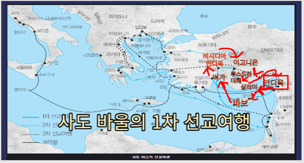 기원전 46~49년에 이루어진 바울의 1차 선교 여행에서 방문한 지역을 보면